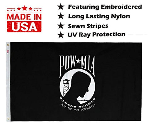 Winbee Embroidered POW MIA Flag 3x5 Ft - Double Sided Embroidered, Long Lasting Double Nylon, Double Sewn Stripes and Brass Grommets, UV Protected, Best US Military Flag 3 by 5 Foot
