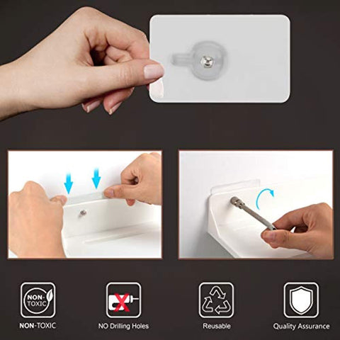 [Easy Installation and Usage](1)Just strip off the protective film and then install the shelf on the window and finally tighten the screws with small tool.No drilling holes.No extra tools.No damage.(2)Can be used on another smooth surface apart from window.You can use the screws to mount it on the wall to keep the shelf secure based on your preference.(3)Hold different products,keeping the home organized and everything within your reach.