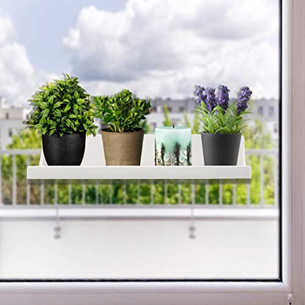 [Simple Design and Good-Looking Appearance](1)The window shelf is also equipped with a groove,ideal for putting phones and other things on it.(2)With an edge baffle,it avoids articles to slip off.(3)Using a triangular structure keeps the window shelf more stable and durable.