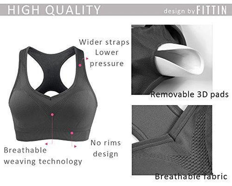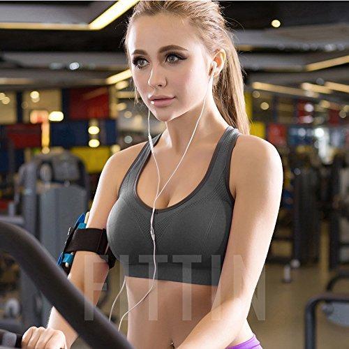 FITTIN Racerback Sports Bras - Padded Seamless Med Impact Support for Yoga Gym Workout Fitness