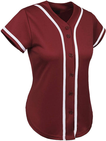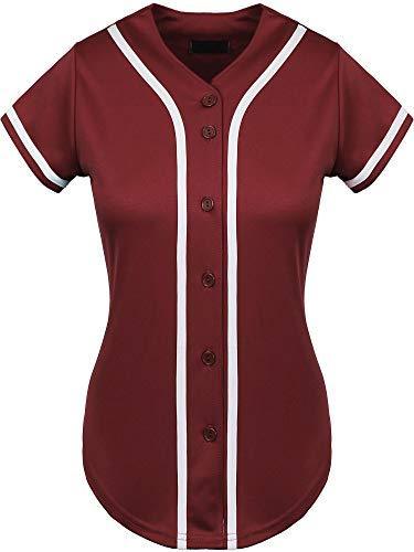 Hat and Beyond Womens Baseball Button Down Tee Short Sleeve Softball Jersey Active Shirts Made in USA