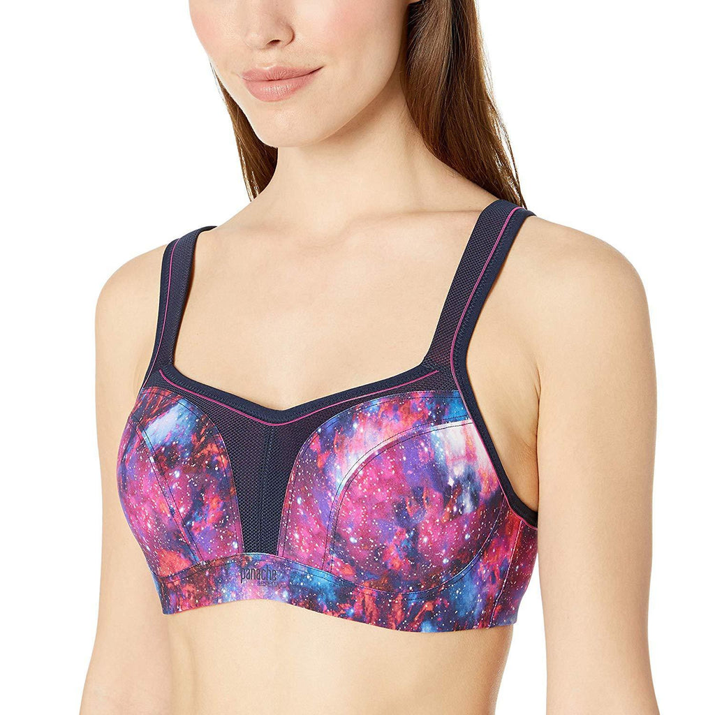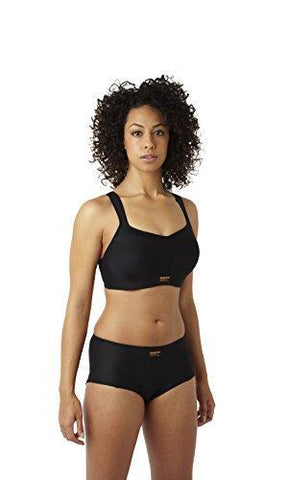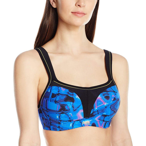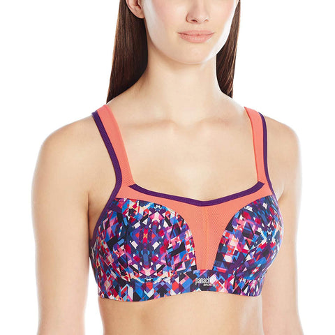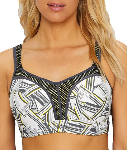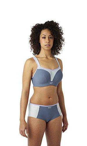 48% Polyamide/38% Polyester/14% Elastane Imported Hook and Eye closure Hand Wash Underwire sport bra featuring ventilating mesh panels at shoulders and bust Logo at front band. Wide cushioned shoulder straps UK sized bra with smooth shape with flat seams