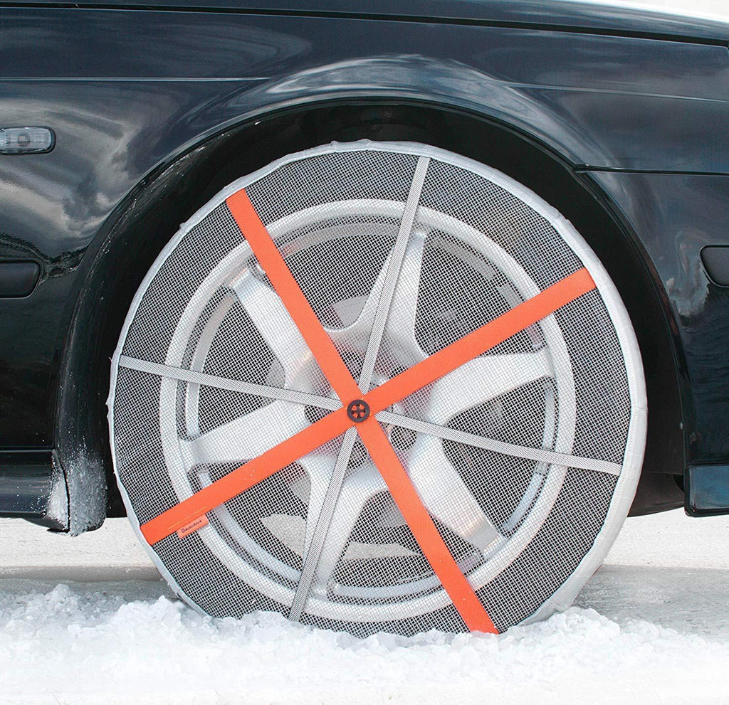 Temporary winter aid for passenger vehicles Easy to use and store Lightweight and reusable Perfect temporary winter traction aid for vehicles Approved by TUV SUD and leading car manufacturers Easy and fast to fit and remove even in cold and difficult weather conditions Lightweight and easy to store, reusable and machine washable Usable with alloy rims - even when metal chains not allowed, working on all vehicles with low clearance between tire and car body