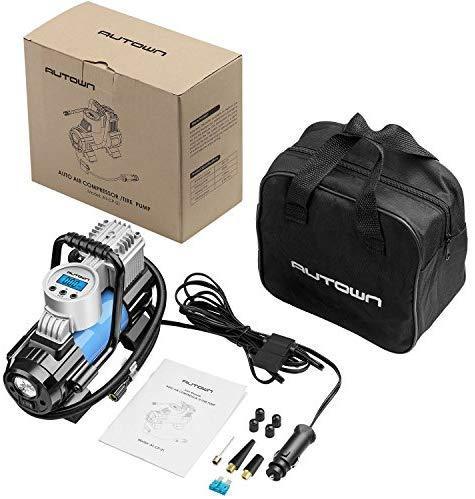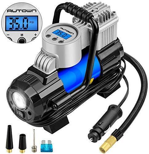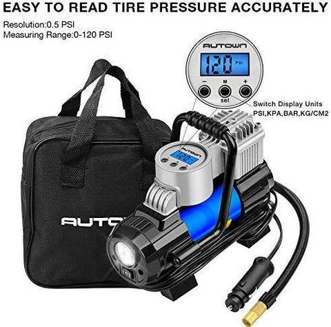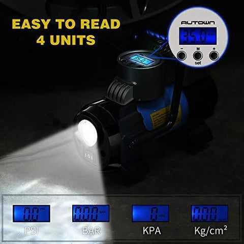 AUTOWN Air Compressor Pump, 12V DC Portable Digital Tire Inflator with Gauge 140W 120 PSI, 4 Display Units, Auto Shut-Off for Overheat Protection