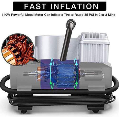[ SMART PRESET INFLATION ] - AUTOWN tire inflator have overheat protection, simply preset digital air compressor to your target PSI, overheat protection will shut off automatically when reaching the desired tire pressure, this makes it possible for you to use our digital tire inflator safely and lasting more time.