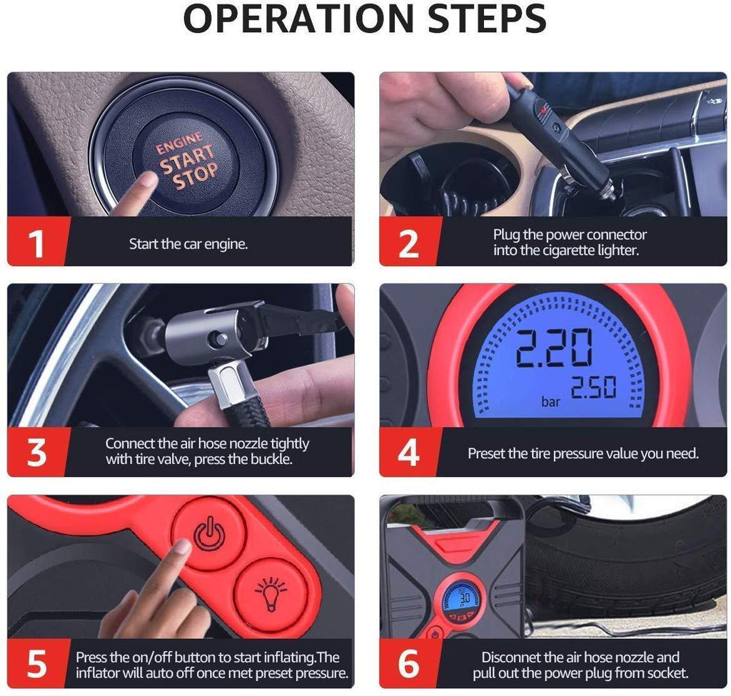 ♛【100% Satisfactory Customer Service & notes】We provide a 12-months 100% satisfactory warranty and 24 hours customer service. Note : This air pump is designed for normal size cars. NOT suitable for RV, ATV, pickup, truck and other big vehicle with high pressure tires.