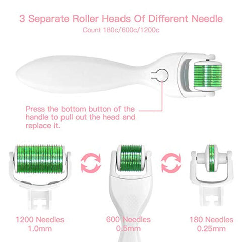 3 in 1 Dermar Roller set 0.25mm 540 Micro-Needle Roller For Face and Body Microdermabrasion Exfoliating Roller Skin Care Tool -Includes Storage Case