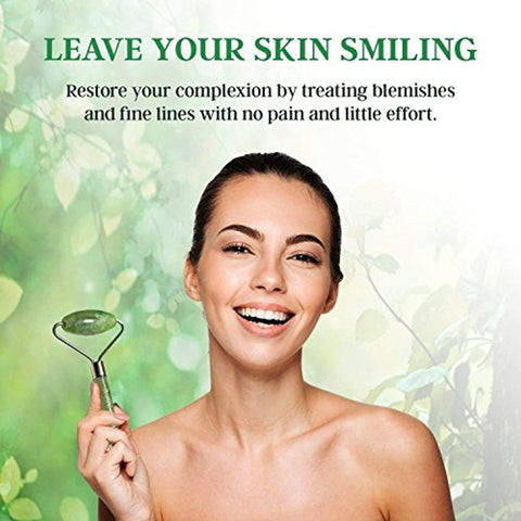Anti Aging Jade Roller for Face Massage, 100% Natural Facial Massager with Double Rollers to Rejuvenate Skin