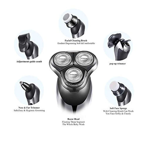 Electric Shaver Razor for Men 5 in 1 Rotary Shaver Beard Trimmer Nose Hair Trimmer Waterproof USB Fast Charging