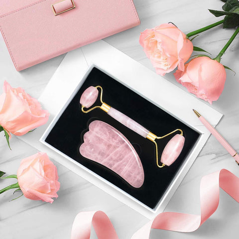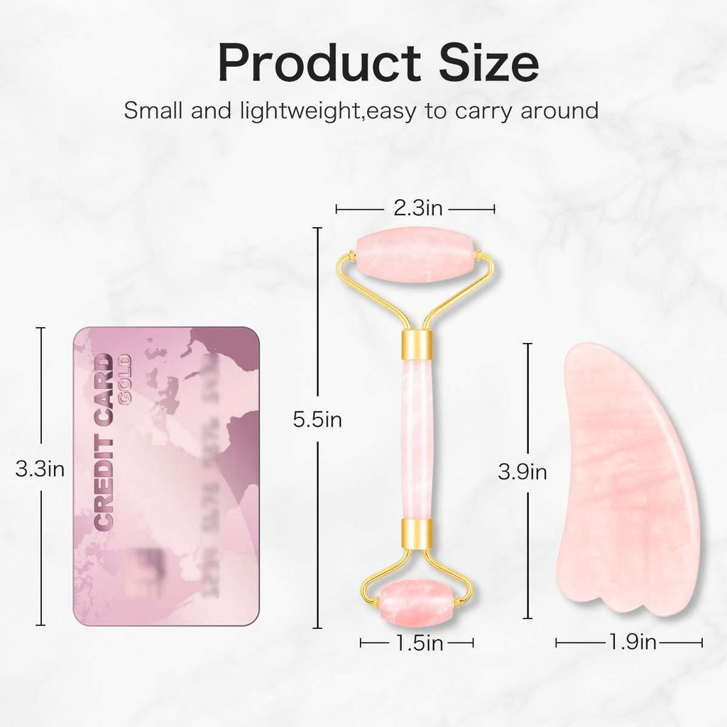 Jade Roller & Gua Sha Scraping Massage Tool - Face roller Massager Face Eye Beauty Tool - Skin roller rose quartz For Slimming - Facial Roller for Massage Your Skin