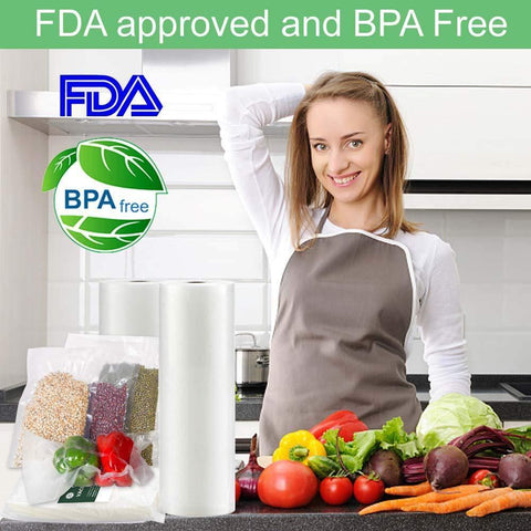 Food Safe Material - BPA Free bags and FDA Approved for freezer food storage, microwave, and sous vide vacuume cooking.Two of most popular sizes for single portion or medium sized cut foods,Also great for house-hold items.