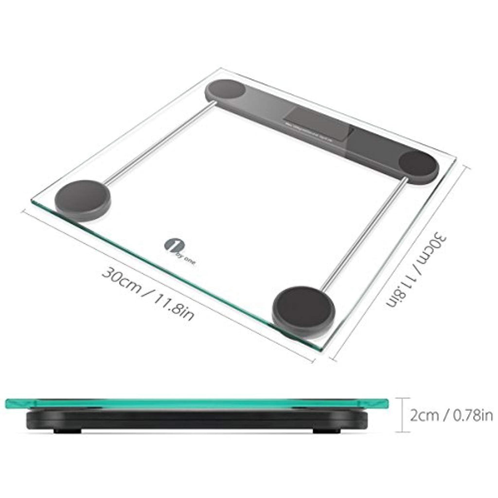 Safety and Comfort - 6mm glass provides exceptional sturdiness; Large 12" x 12" platform, clear LCD display for your usability. 1-YEAR WARRANTY by 1byone