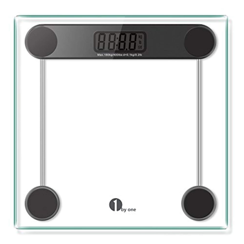 1byone Digital Body Weight Scale Bathroom Scale with Step-on Technology, 6MM Glass, Max Weight 400 Pounds