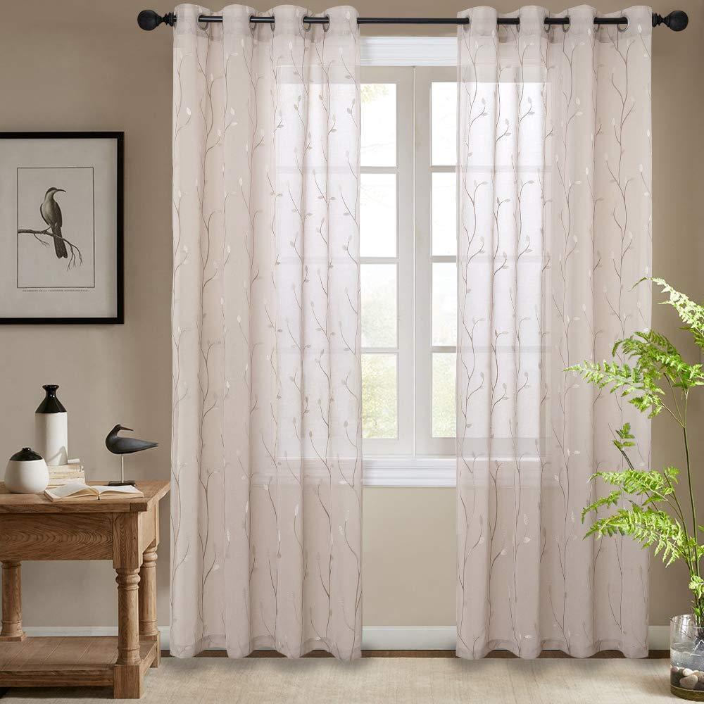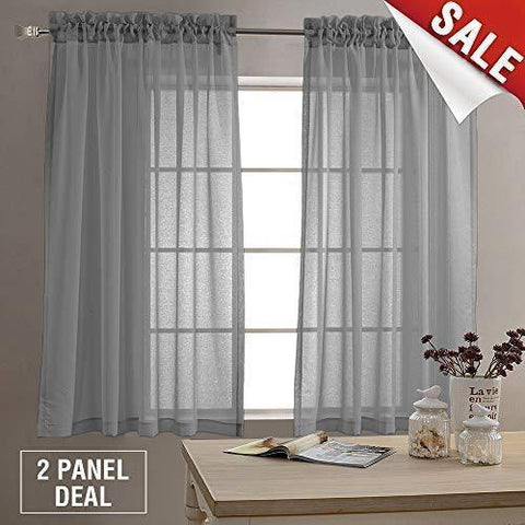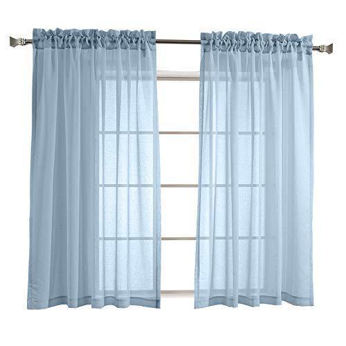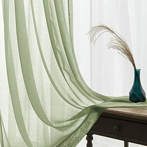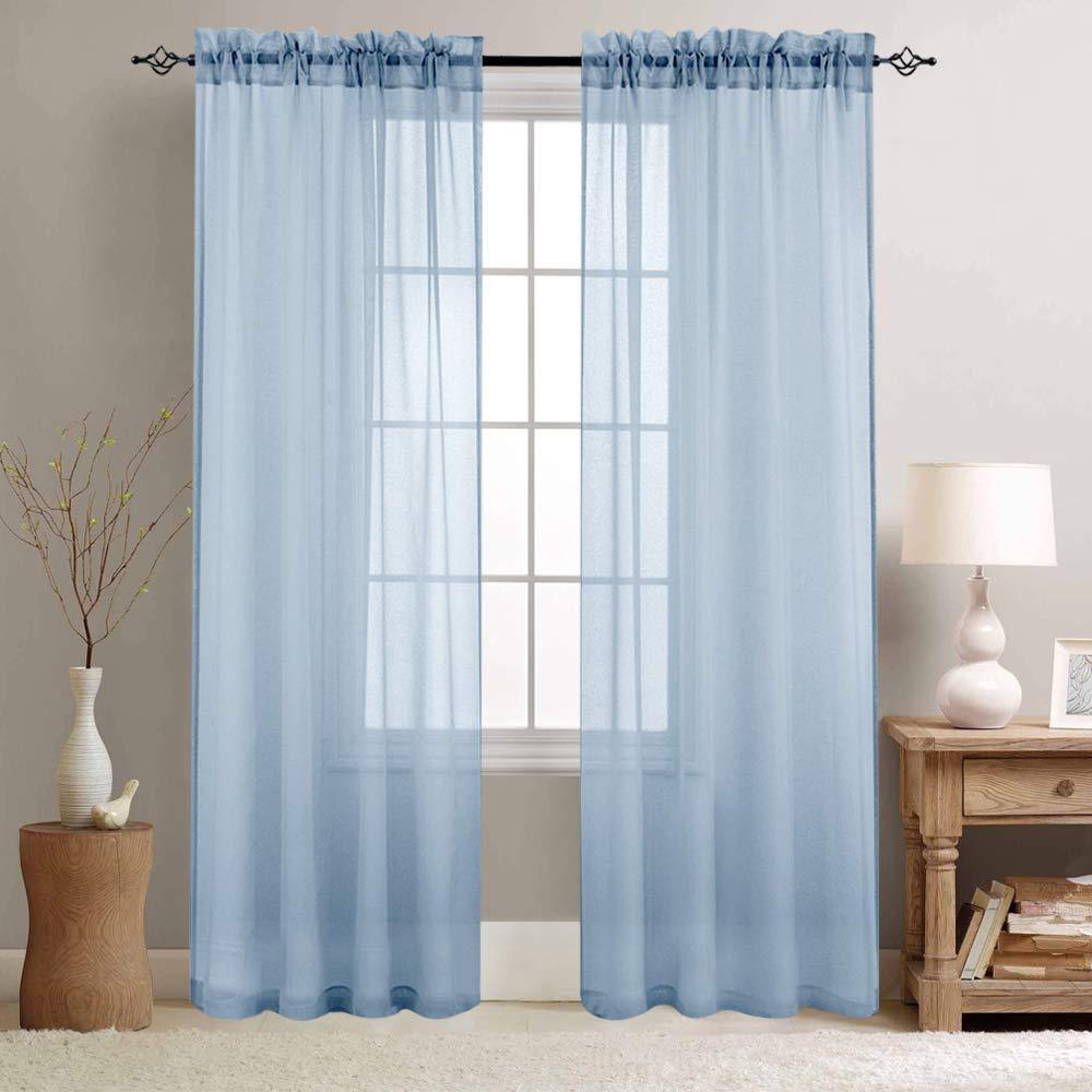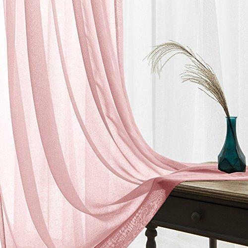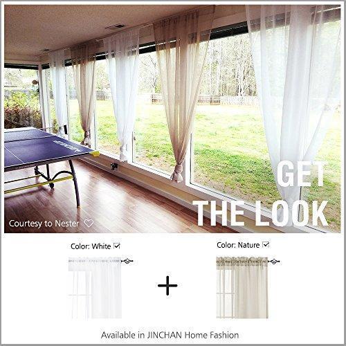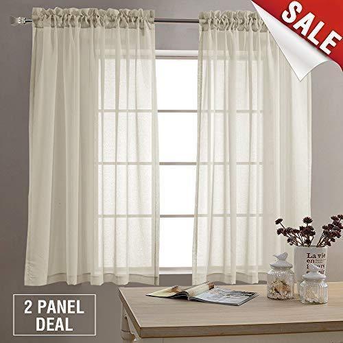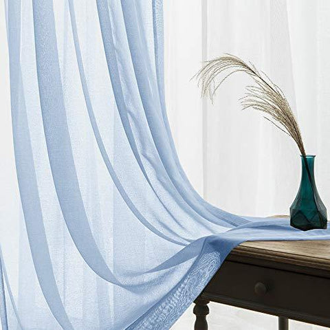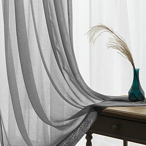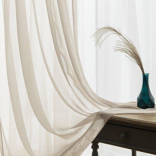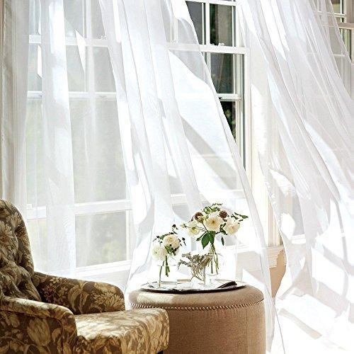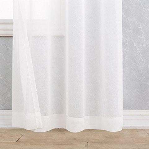 2 Panel Sheer Curtains White 84 inch Living Room Drapes Window Curtain Voile Sheers Linen Textured