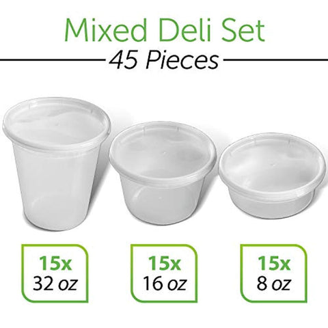 [45 Pack] Plastic Containers With Lids Set - Freezer Containers Deli Containers With Lids - Meal Prep Containers for Food Storage Containers - Plastic Food Containers by Prep Naturals [Mixed Sizes]