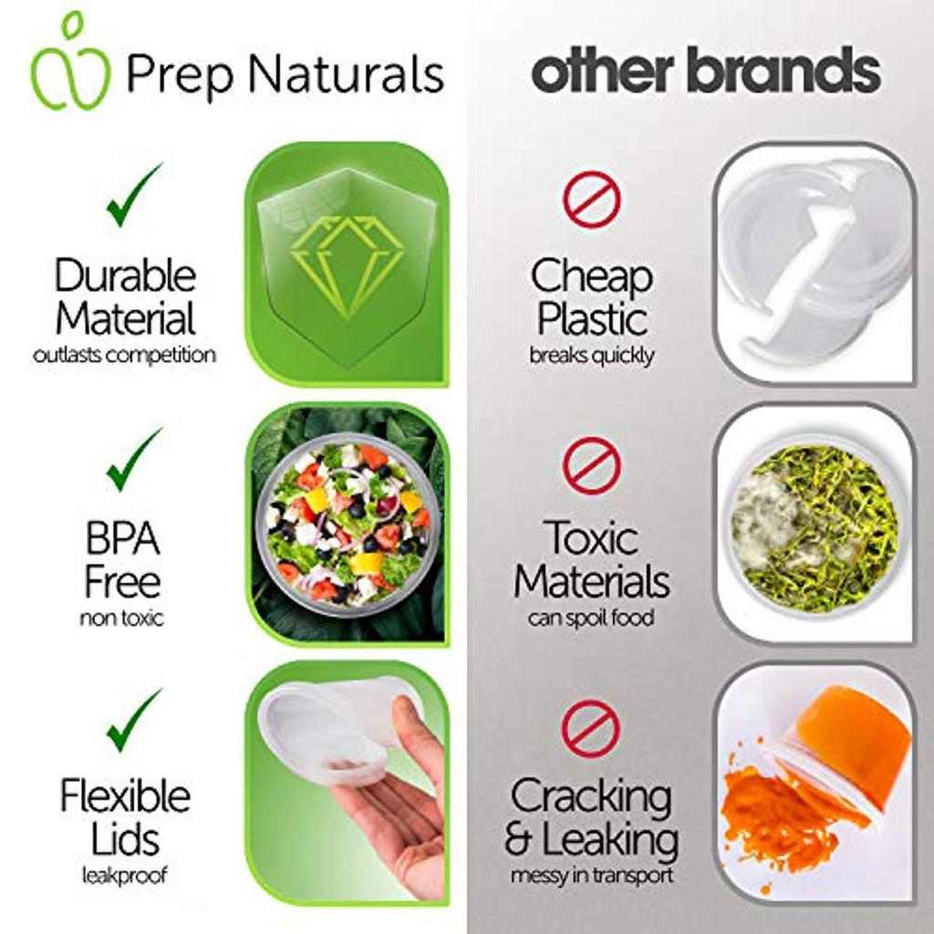 ✅ UNLIKE OTHER BRITTLE, CRACKING CONTAINERS WITH LIDS THAT WON’T BUDGE, our Prep Naturals food containers are engineered with strong, durable plastic that WON’T BREAK OR WEAR, and leak-free lids made of soft, flexible PET plastic FOR A SMOOTH, EASY OPEN EVERY TIME.
