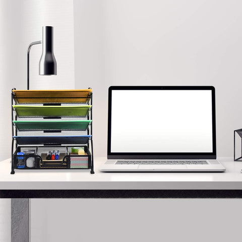 Bextsware 5-Tier Mesh Desktop Organizer File Folder with Sorters Basket, Document Letter Tray Holder Desk Accessories Organization Supplies for Office or Home, Black