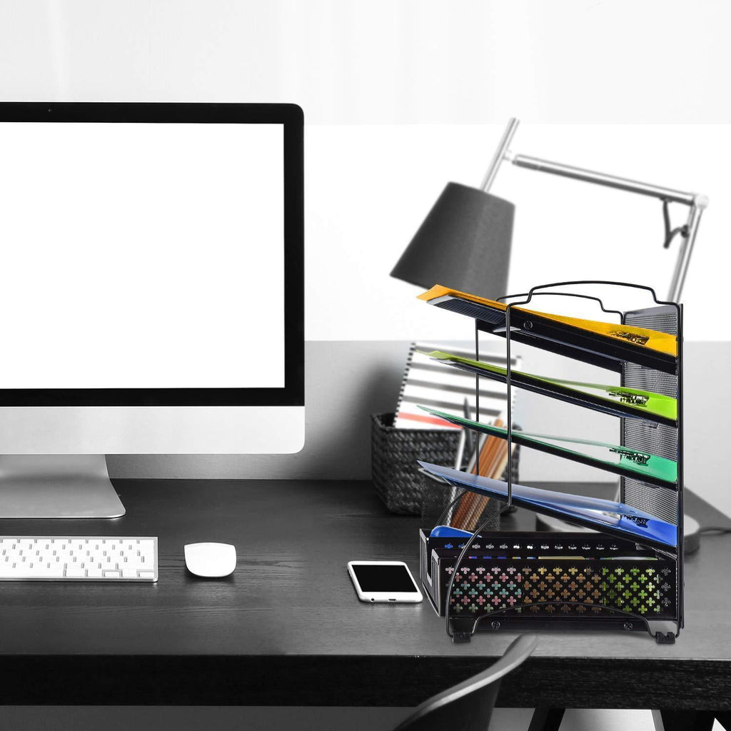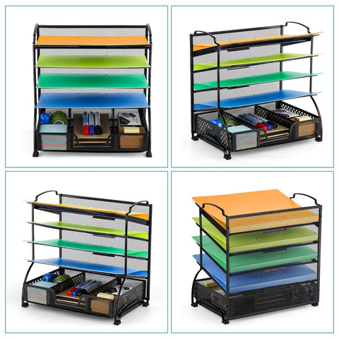 ☀【ORGANIZER LIFE, VERSATILE MAKE BETTER】---Top 4 tilted trays for easy accessing document. The bottom flat tray is great for stationary, desk accessories, full advantage of your vertical and horizontal space and keep your desktop clear.