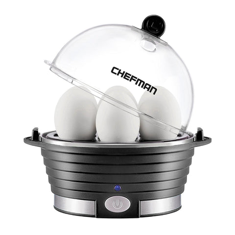 Chefman Electric Egg Cooker/Boiler, Rapid Egg Maker, Countertop, Hard Boil Egg Steamer and Poacher, 6 Egg Capacity With Removable Tray, Small, Black