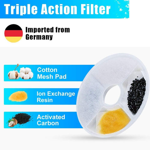 Provide Healthy Drinking Water for your Pets: These filters for Catit water fountain are made of cotton mesh, ion exchange resin, and activated carbon.Triple Filtration purified filtering out hair, sediment, and debris.Removing water smell,making water more clean and fresh.
