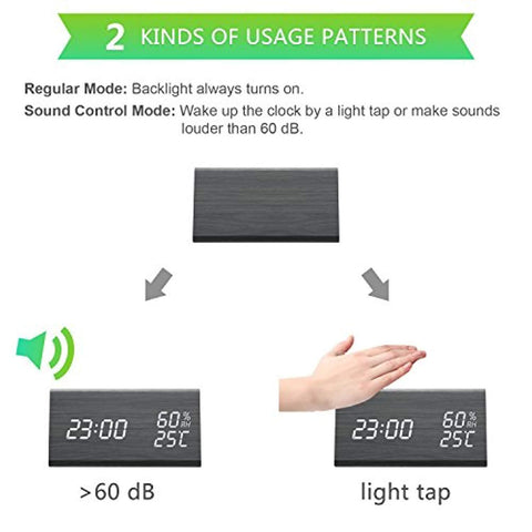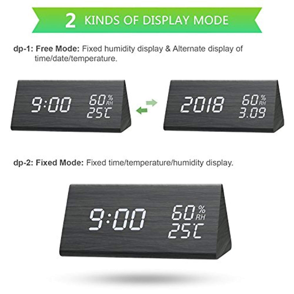 【LED BACKLIGHT & 3 Display Modes】This desktop digital alarm clock suits for home & office. 3 clear and bright display modes show Date, Time, Temperature and Humidity. Quiet and no ticking sound.