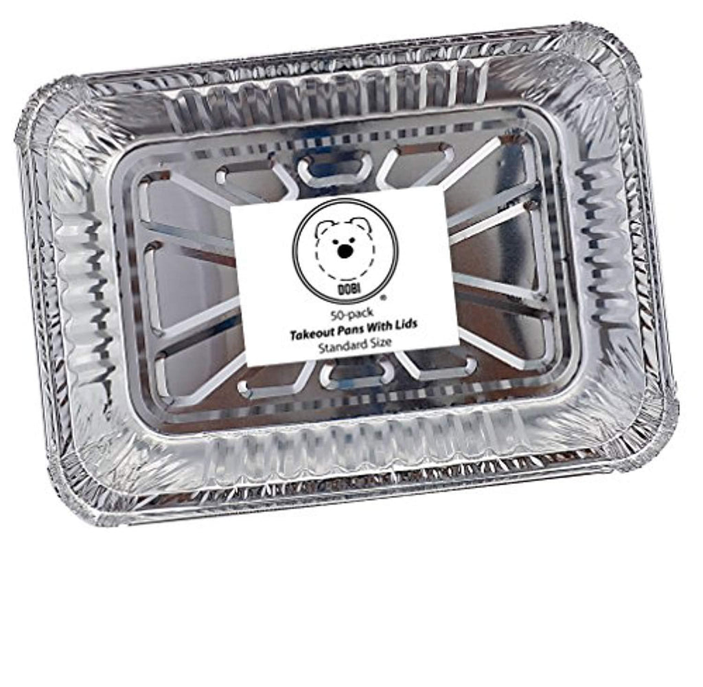 DOBI (50 Pack) 2.25lb Takeout Pans - Disposable Aluminum Foil Take-Out Containers with Lids, Standard Single-Portion-Size, 8 1/2" x 6" x 1 4/5"