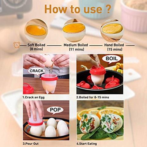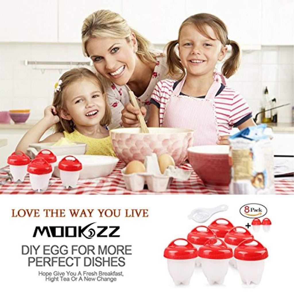 Egg Cooker 8 Pack Egg Poachers Egg Boiler - Hard Boiled Eggs without the Shell, BPA Free, Non Stick Silicone Egg Cups, AS SEEN ON TV, by MOOKZZ
