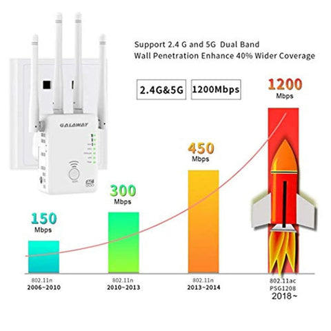 GALAWAY 1200Mbps WiFi Range Extender 2.4GHz and 5GHz Signal Extenders Internet Booster 360 Degree Wifi Booster Signal Amplifier with 4 Antennas