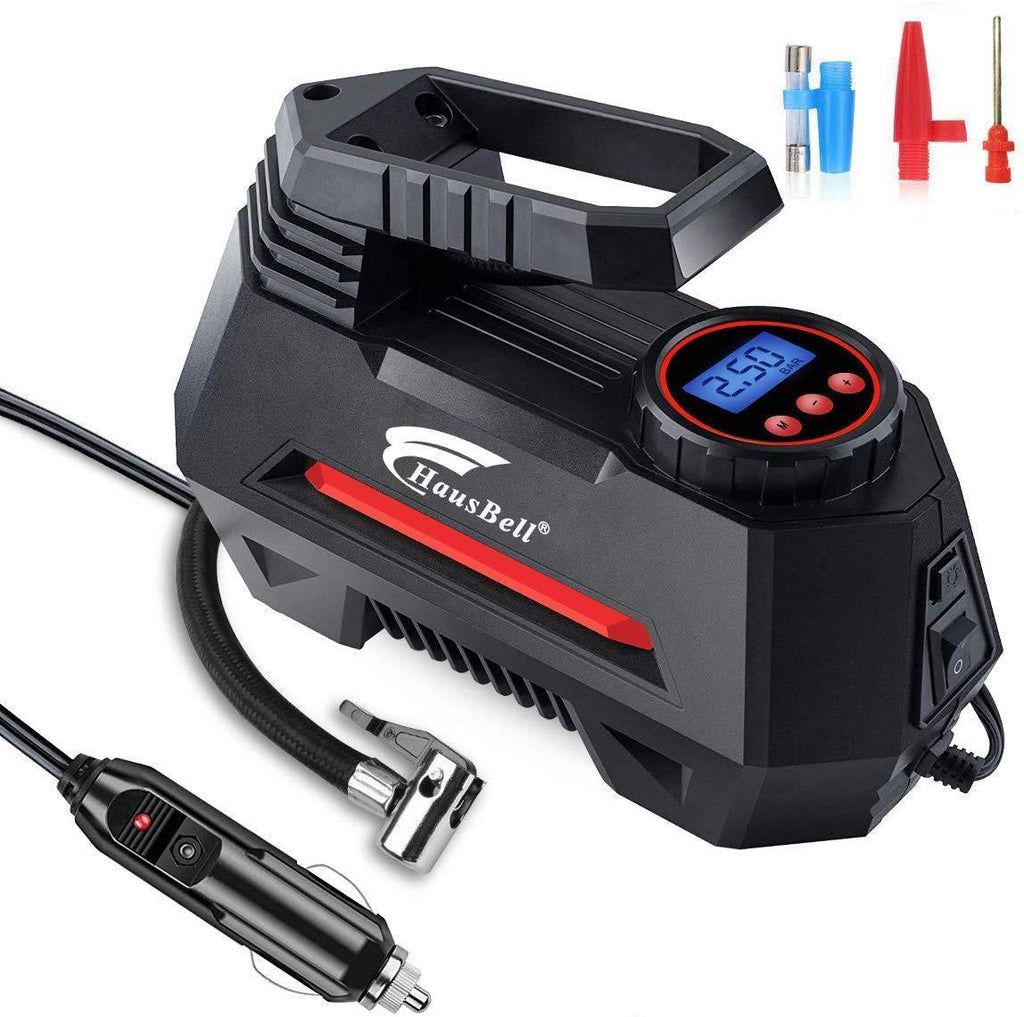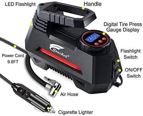 HAUSBELL Portable air Compressor for Car Tires, 12V DC Air Compressor tire inflator Pump, 150 PSI with Emergency LED Flashlight for Car, Motorcycles, Bicycles,Inflatables