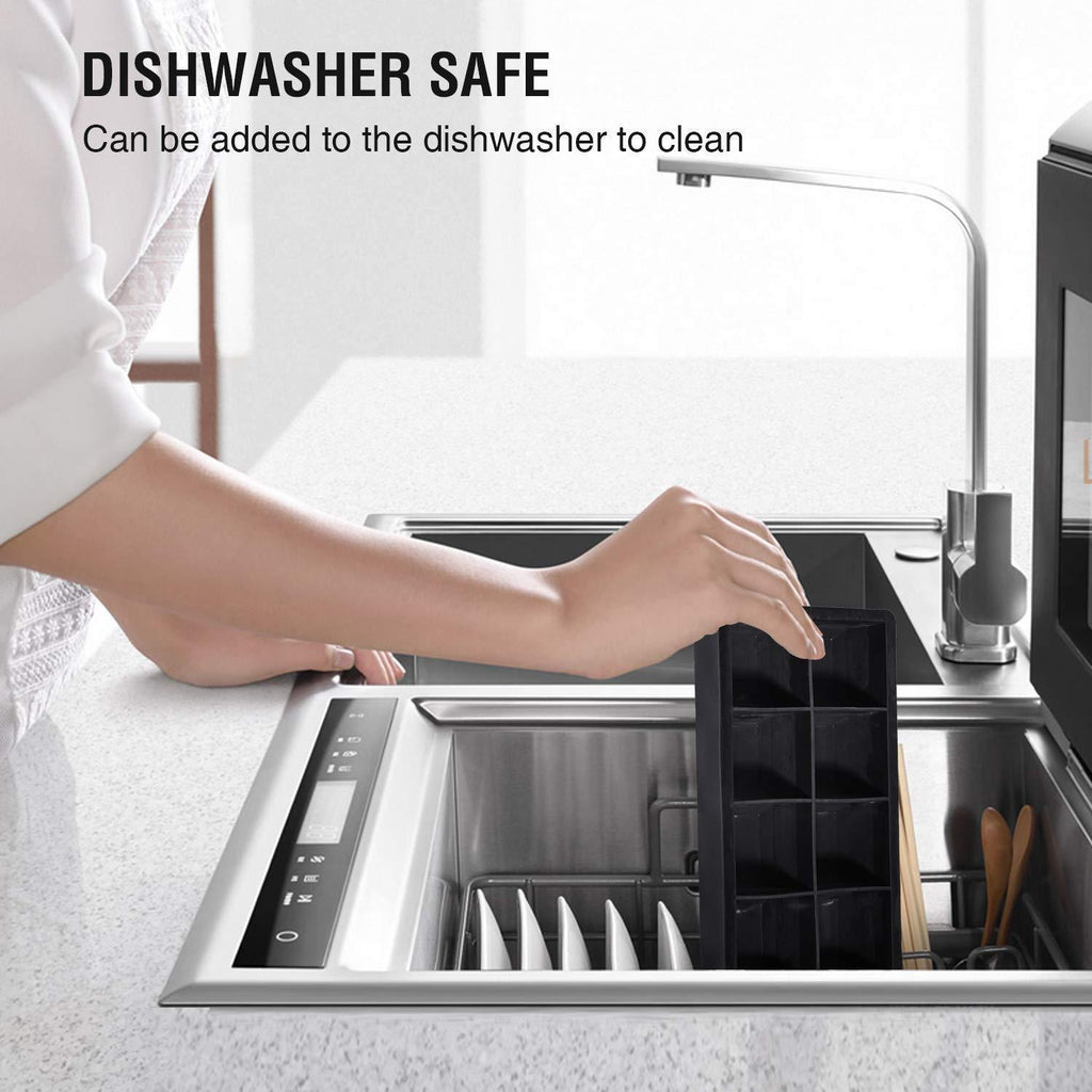 【Food-Grade Safety Material】: Made of Silicone approved by FDA, 100% BPA Free and Dishwasher Safe, these guarantee safety and durability of the 2 ice cube trays.