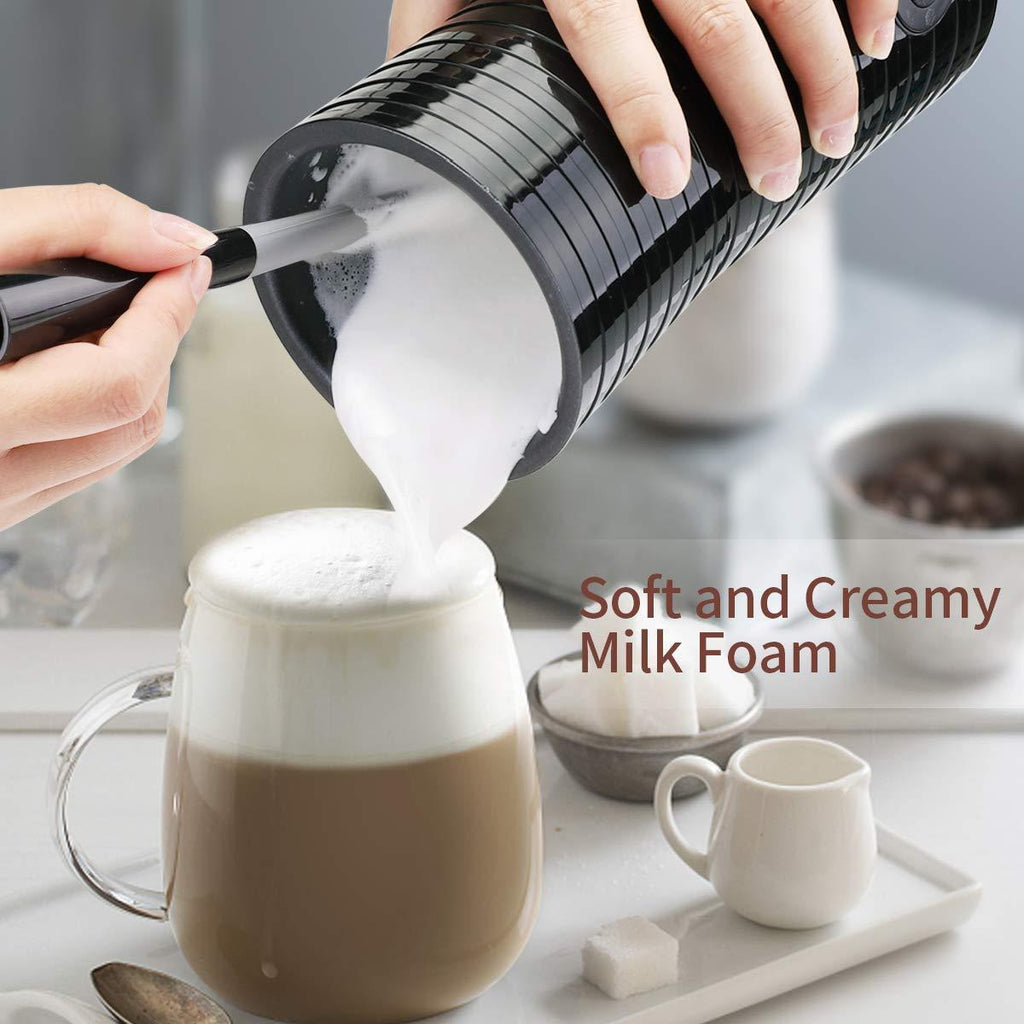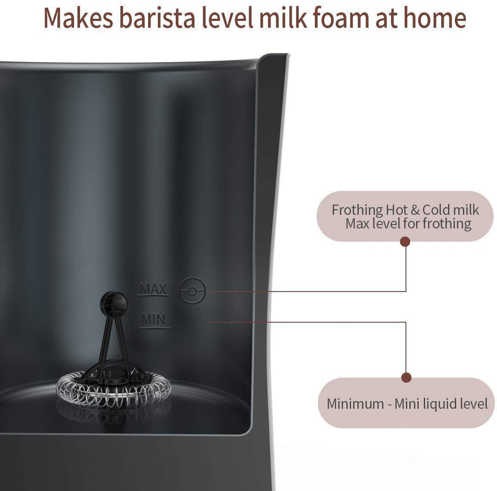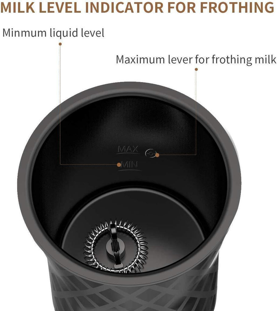☕[QUIET MILK FROTHER]: With the magnetic stirring technology, the noise of this milk frother is only 55 dB. Low noise promises not to disturb your family when you prepare morning coffee.