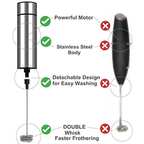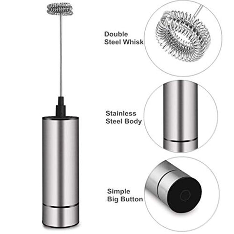 [THE FASTEST HANDHELD COFFEE FOAMER] This mini battery operated frother is portable for traveling, home and office. With the double steel whisk and the super motor (21,000 rpm), this coffee frother machine can froth foam in as fast as 12 seconds. Besides, it also can be used as stirrer for hot or cold drinks as well as frappe and as small blender for cocktail, milkshake, hot chocolate, soup, or even as eggs whisker beater.