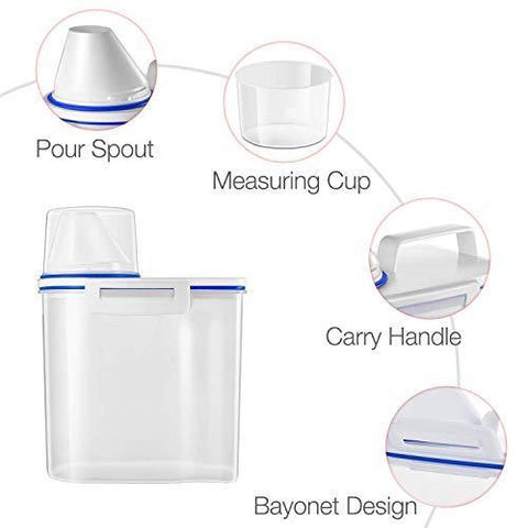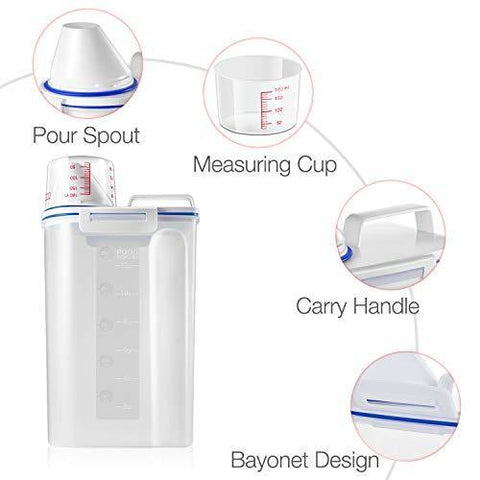 A convenience added with this food container is that it has a spout andcup. If you are not worried about giving your exactly one cup or half cup of food, you can simply use the spout.