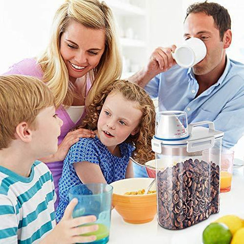 Mini Dry Food Storage Container - Rice Container with Pour Spout + Cup - Handy Dry Food Keeper for Sugar Beans Grain Candy 1.5L Blue