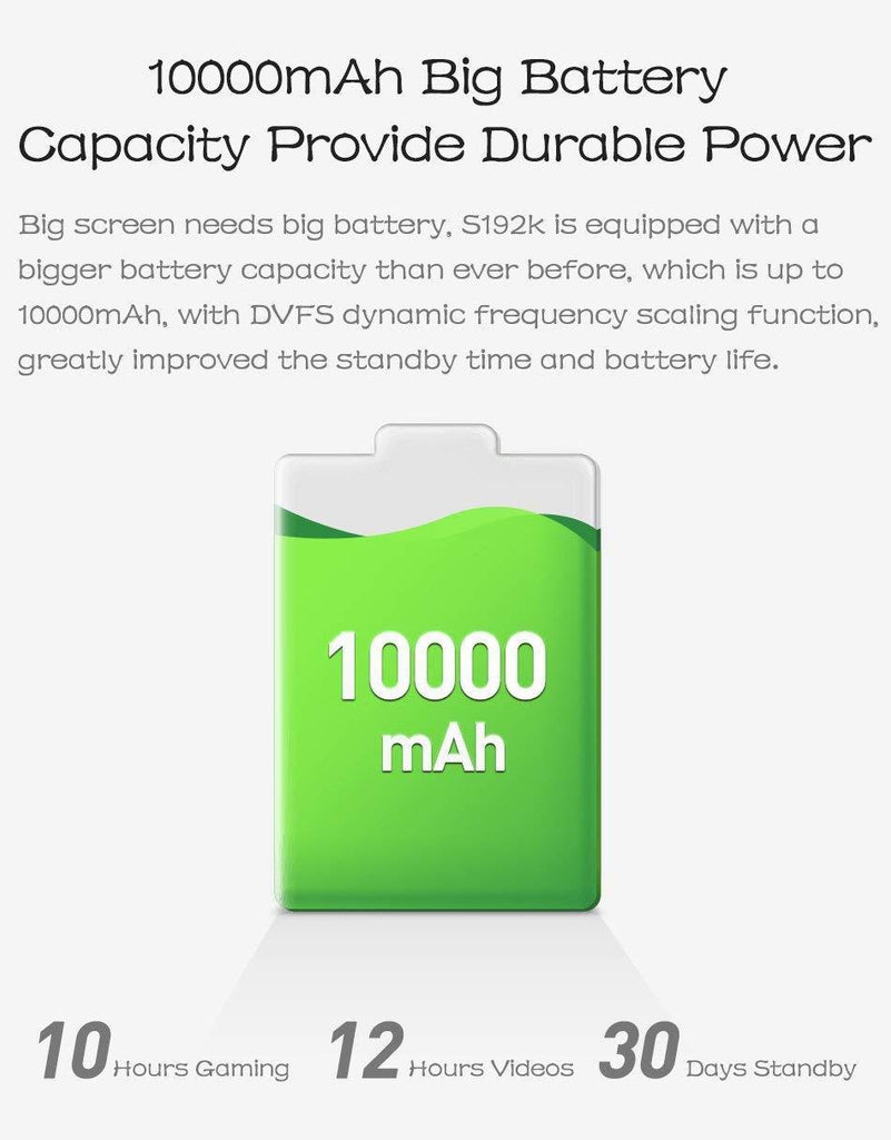Quad Core 1.8GHz ,ARM Cortex-A17 ,GPU:ARM MAIL-T764.4GB DDR3 RAM, 64GB EMMC(Soupport 128GB TF card).10000mAh battery, long use of time. Andriod 5.1 system, Bluetooth: 4.0,5M Front Camera,1080P HMDI output.
