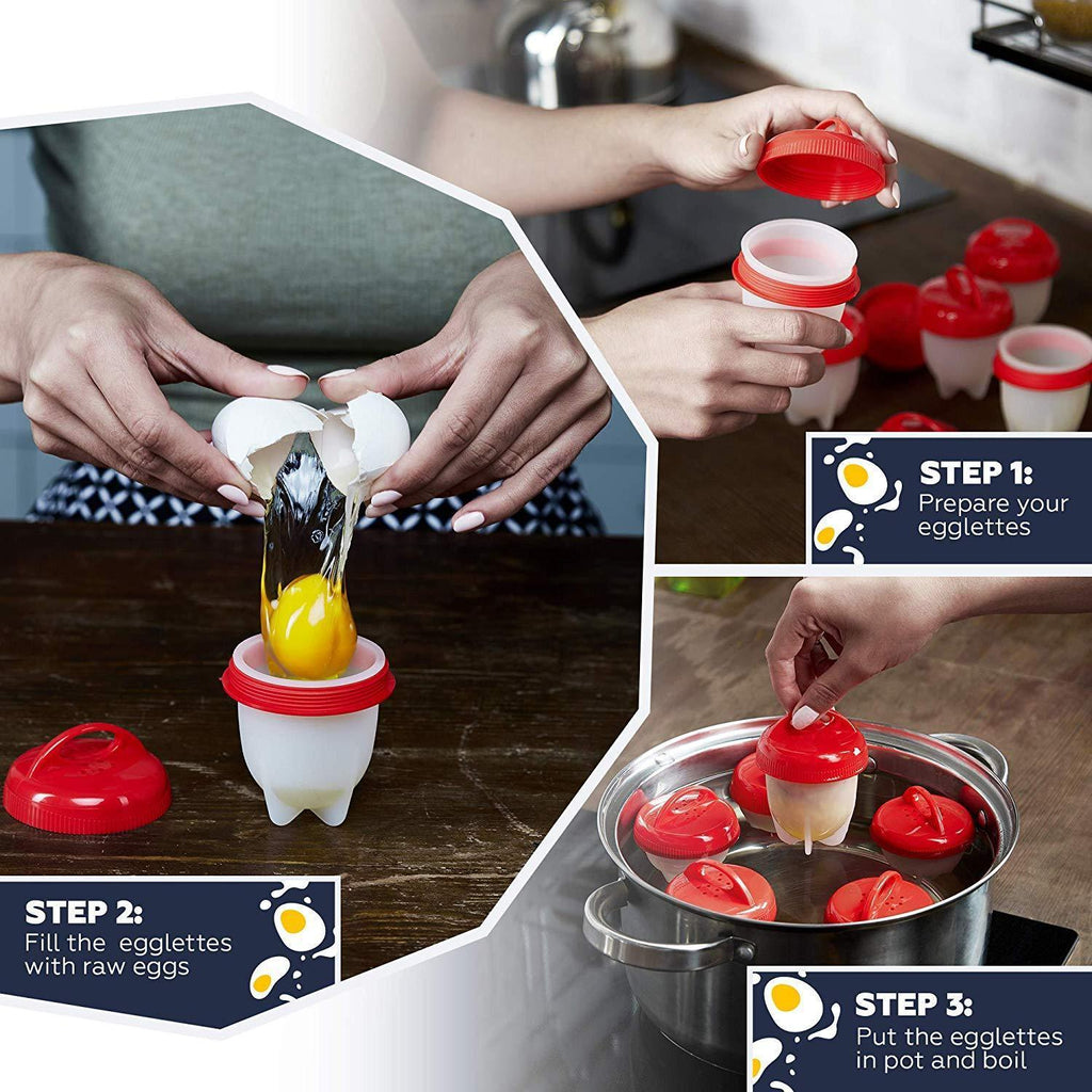 Non-stick Silicone Egg Cooker – Hard Boiled Egg Cooker for Boiling Eggs without Shell – Hard & Soft Boiled Egg Cooker - Pack of 6 by Stellar Gallery