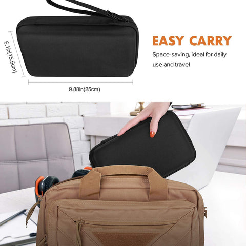 External Dimension: 9.8 x 6.2 x 2.6 inches, Internal Dimension: 8.8 x 5.2 x 2.1 inches; Comes with a hand strap makes it easy to carry around; Space-saving, ideal for daily use and travel