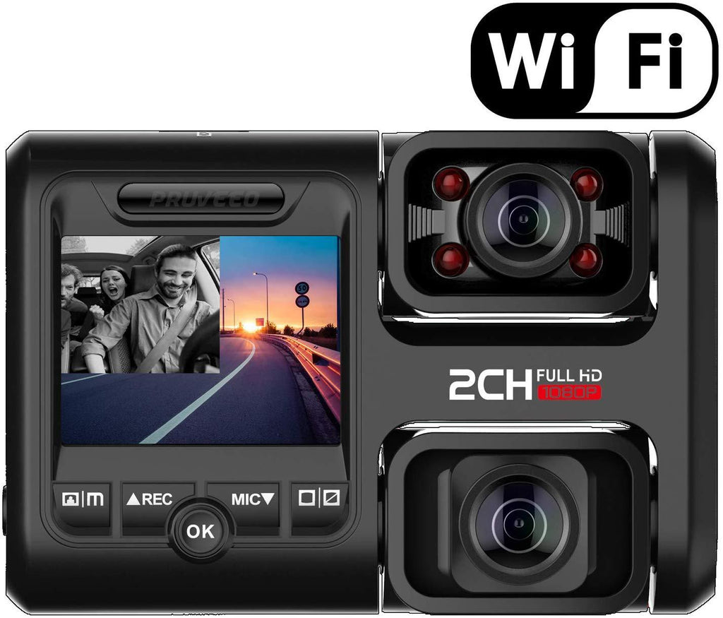 Pruveeo D30H Dash Cam with Infrared Night Vision and WiFi, Dual 1080P Front and Inside, Dash Camera for Cars Uber Truck Taxi