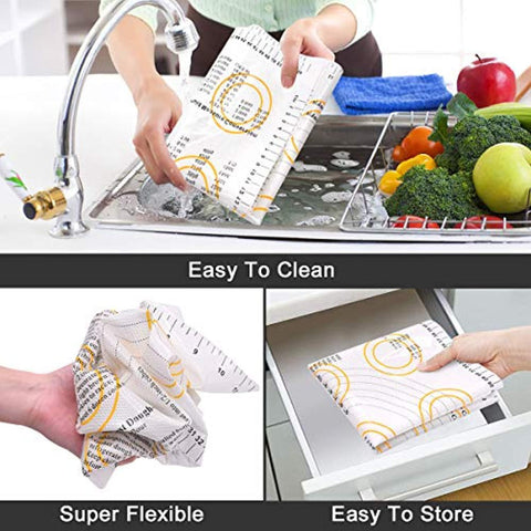 ❀【NON-SLIP & NON-STICK】 The bottom of the mat is non-slip, it can be kept firm and fits perfectly on your work surface. You can finish all the kneading, rolling and forming. After use, just wash the silicone baking mat with warm soapy water or wash in the dishwasher