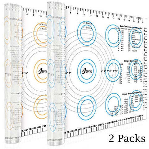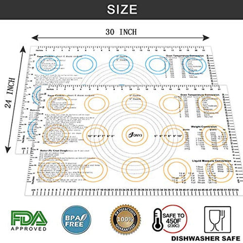 ❀【METICULOUSLY DESIGNED】 Now, JONYJ has designed a more beautiful and convenient baking mat for you! Legible scale, temperature conversion, weight conversion, liquid measure conversion and commonly used recipe of sugar cookies, butter pie crust dough, make your time in the kitchen more productive and fun with our pastry mat